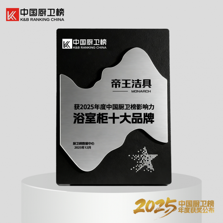 近日,“2025中国厨卫榜”榜单正式发布。帝王洁具凭借其深厚的品牌积淀、持续的创新动力与出色的产品表现,一举荣获“卫浴十大品牌”、“年度消费者喜爱品牌”、“十大创新卫浴品牌”、“智能卫浴十大品牌”、“浴室柜十大品牌”五项大奖,成为本届榜单中备受瞩目的焦点。