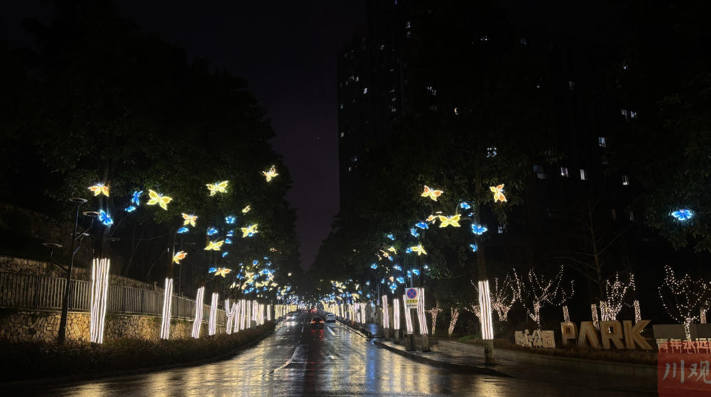 近日,一条短视频在社交媒体上走红。视频中,自贡市东方广场的街道上方行道树树枝交叠,形成廊道穹顶,树枝上缀满闪烁的灯串,行人车辆穿梭其间,如入梦境。视频配文“不是自贡灯会去不起,而是街灯更有性价比”,在社交平台一经发布便迅速收获大量点赞。